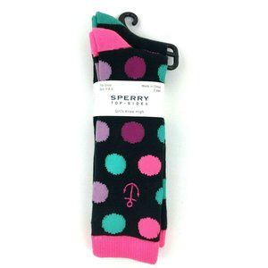 Sperry Top Sider Girls Knee High Socks 3-8.5 Black Polka Dot Anchor 2 Pairs
