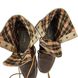 Women’s Size 8.5M Brown Leather High Top with Plaid Lining Boots