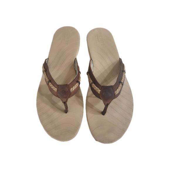 Sperry Top Sider Leather Flip Flop Sandals, Brown, Size 9.5