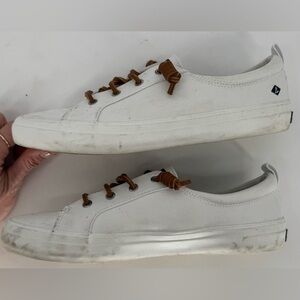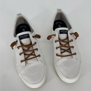Crisp, clean details and a secure-but-relaxed-fit—that’s our essential sneaker, in a nutshell. It’s made of breathable material, easy to slip on and off and cushioned for added comfort. Wear it with skirts, leggings, jeans and chinos.Lightweight and breathable linen upperSignature Sperry Barrel-Tied Lacing for a secure fit and easy on/easy off versatilityMemory Foam cushioned insole provides all-day comfortFlexible non-marking rubber outsole delivers enhanced traction