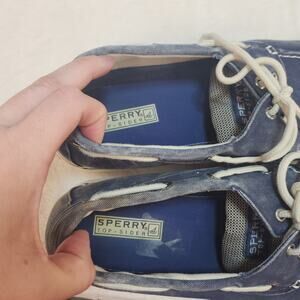 Sperry Top Sider Mens 12 Blue Canvas Boat Shoes Faded Low Tops Fabric Preppy
