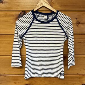 Sperry Top Sider Rash Guard Womens S Swim Shirt White Navy Raglan Sun Beach