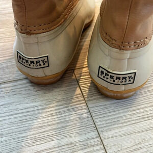 Sperry Top Sider Saltwater Ankle Lace up Duck Boots with Pink Lining and Beige 6
