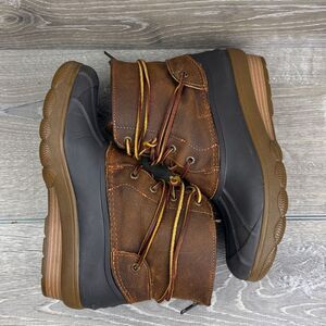 Sperry Top Sider Saltwater Tide Wedge Women’s Sz 8M Brown Leather Rain Duck Boots in good condition. Please see picture for toe box distress. Stay stylish and dry with these rugged women's duck boots. Featuring a durable brown leather upper and a waterproof rubber lower, these boots are perfect for any weather. Ideal for outdoor adventures or casual wear.