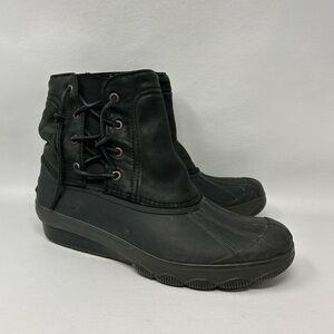 Sperry Top Sider Saltwater Wedge Spray Duck Boot Black STS80769 Women’s Size 10M.