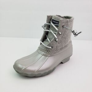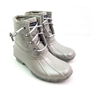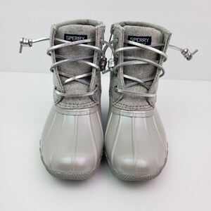 Sperry Top Sider Saltwater Youth Girls Size 3Y Silver Waterproof Duck Boots