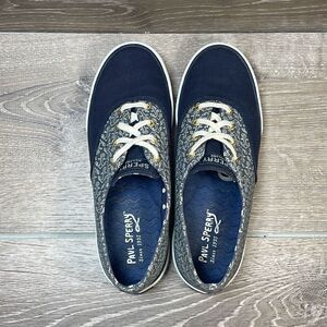 Sperry Top Sider Seacoast Women’s Sz 7M Blue Canvas Nautical Anchors Low Sneaker