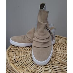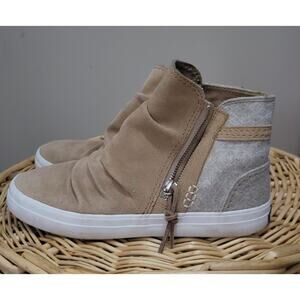 Sperry Top Sider Sneaker Boots Sz 7 Suede Gray Tan Zip STS82412 Women Good Cond