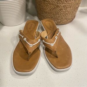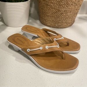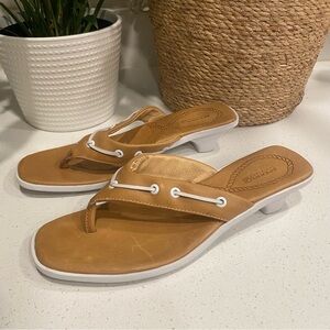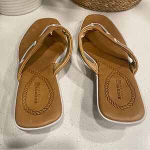 Sperry Top Sider White & Tan Leather Low Heel Sandal Women’s 8