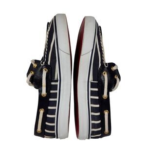 Sperry Top Sider Women’s 6M Biscayne Boat Shoe Slip On Stripe Navy White Costal