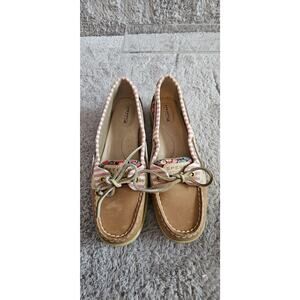 Sperry Top Sider Womens Size 8 Angelfish Tan Leather Floral Boat Shoes