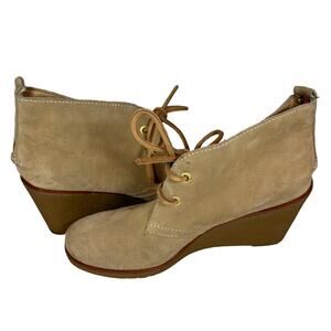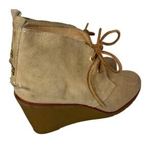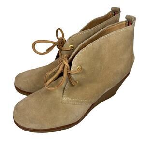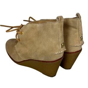 Sperry Top Sider Women's Sz: 9.5 Tan Harlow Lace Up Suede Leather Wedge Bootie