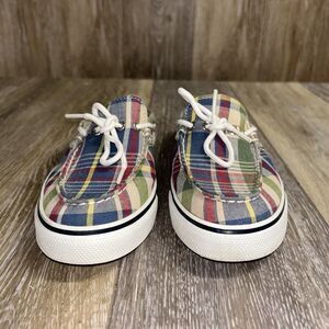Sperry Top Sider Womens US Size 7.5 Blue Red Plaid Slip On Boat Shoes 977982 B9