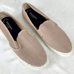 Sperry Top Siders W 10 Blush Seaside Perforated Slip On Sneakers Memory Foam