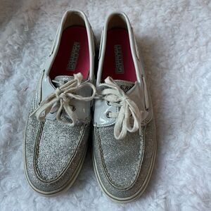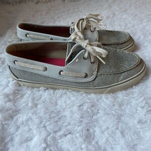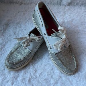 Sperry Top Sider silver glitter boat shoes size 8M