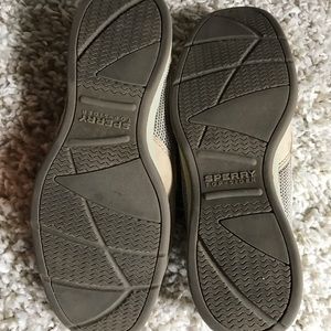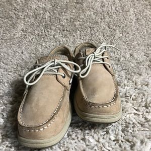Sperry top sider boat shoes, women's size 5 1/2. Color tan/taupe. Has a lot of life left in them.