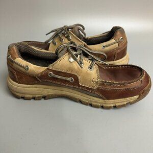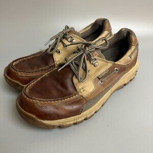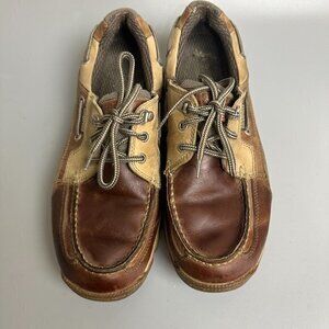 Sperry Top sider waterproof Gold col Brown leather 2 tone boat shoes size 10.5 M