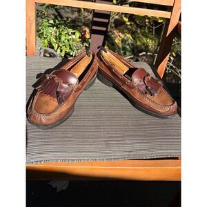 classic men’s loafers, brown leather shoes, kiltie tassel detail, slip-on footwear, boat shoe style, casual dress shoe, comfortable loafers, versatile men’s shoes, premium leather, durable sole, preowned men’s footwear, business casual, weekend style, stylish men’s shoes, everyday comfort, timeless design, warm tones, summer footwear, fall fashion, heritage brand, smart casual, relaxed fit, leather upper, cushioned footbed