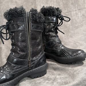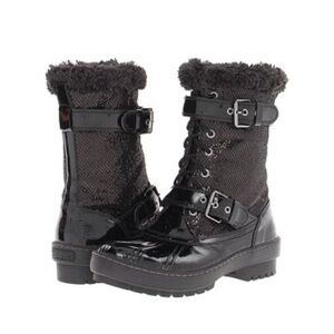 Sperry Top-Sider Alpine Glitter Fur Combat Boots Black 8M Streetwear Luxe