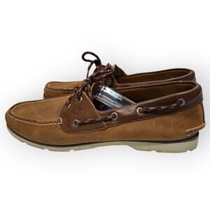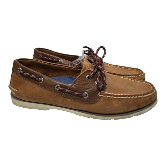 Classic Sperry Top-Sider "Authentic Original" boat shoes in premium tan leather with brown trim and rawhide laces. These shoes offer a timeless nautical style built for comfort and traction, whether you're on or off the water. You'll love the quality and classic style of these Sperry boat shoes!