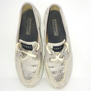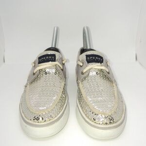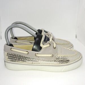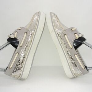Sperry Top Sider Bahama Silver Sequin Boat Shoes Women's Size 5.5 M Silv…