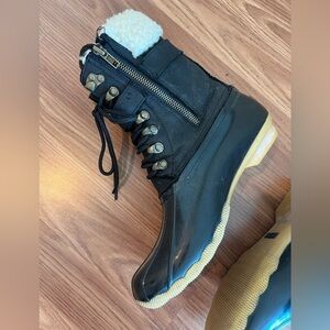 Sperry Top-Sider Black Boots with Cream Fur Lining