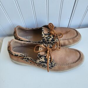 Sperry Top-Sider Boat Deck Shoe Womens Brown Tan Leather Upper Leopard Print 9.5 Sh8