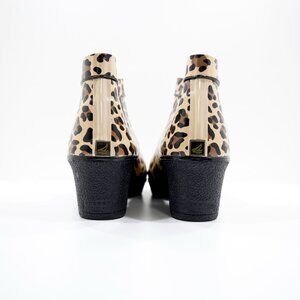 Sperry Top-Sider Brown Cheetah Print Rubber 2" Wedge Heel Short Rain Boots - 10