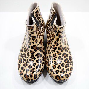Sperry Top-Sider Brown Cheetah Print Rubber 2" Wedge Heel Short Rain Boots - 10