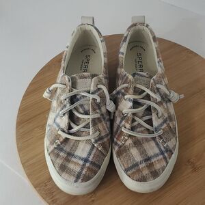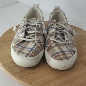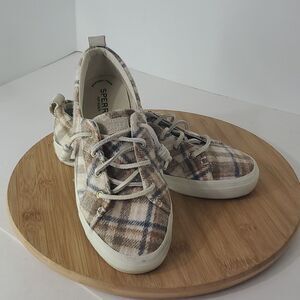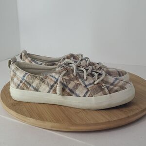 Sperry Top-Sider Crest Vibe Sneaker Ivory Wool Blend Plaid Women's Size 7
