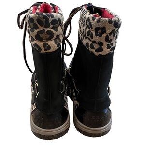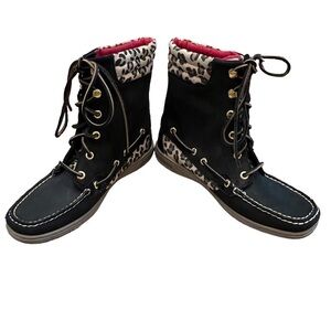 Sperry Top-Sider Duck Boots Womens 7.5 Black Leopard Lined Lace Up