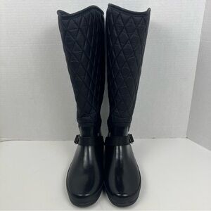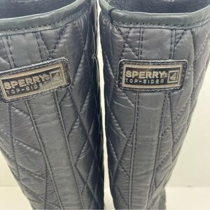 Sperry Top-Sider Hingham Black Tall Quilted Rubber Waterproof Rain Boots Sz 6