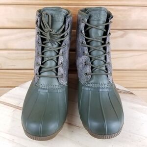 NEW Sperry Top-Sider Saltwater Camo Duck Boots Lace-up Green STS23702 Rubber Rain Snow Winter