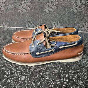 Sperry Top-Sider Mens Boat Shoes Brown & Navy Leather Size 10.5M