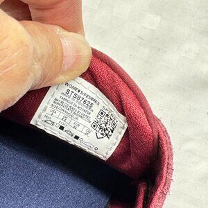 Sperry Top-Sider Coastfish Red Wine Nubuck Slip On Boat Shoes with Metallic laces and details.