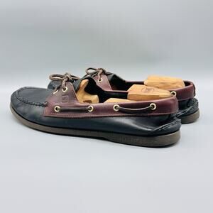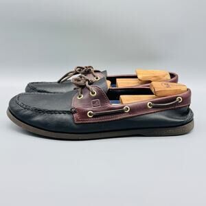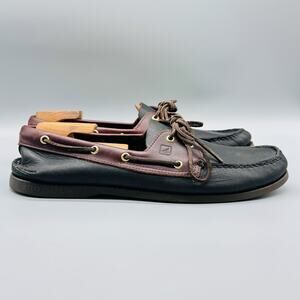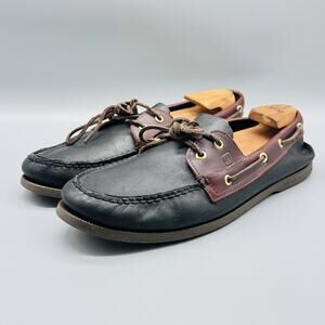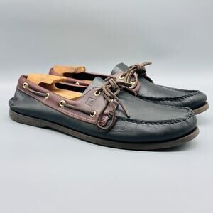 Sperry Top-Sider Shoes Mens 14 Black Brown Leather Boat Moc Toe Nautical Classic