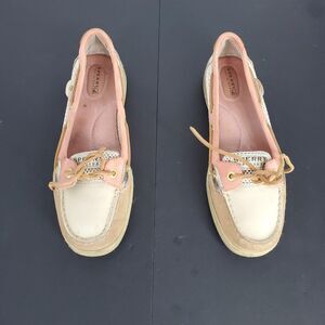 Sperry Top-Sider Shoes Womens Size 8 Tan Coral Gold Boat Deck Loafers Mesh