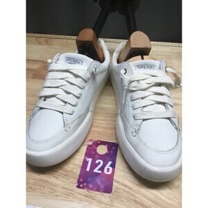 Sperry Top-Sider Sneaker Women's 9M White Leather Lace-Up Low Top Running Shoes
