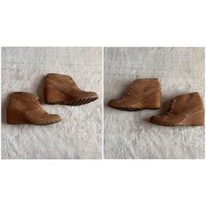 Good used condition. Stella Prow Lace-Up Wedge Bootie by Sperry in Taupe, a neutral tan/light brown shade. Classic preppy aesthetic, a wardrobe essential for the season. Chukka ankle boot made with premium suede and rawhide lace-up detail, see video. Cushioned midsole and non-marking rubber outsole with wedge heel. Note: light wear throughout with faint discoloration at toe and rubbing to upper, minor discoloration at wedge/outsole and light streetwear/marker to bottom sole, see photos. Size 8.5, see photos for measurements.