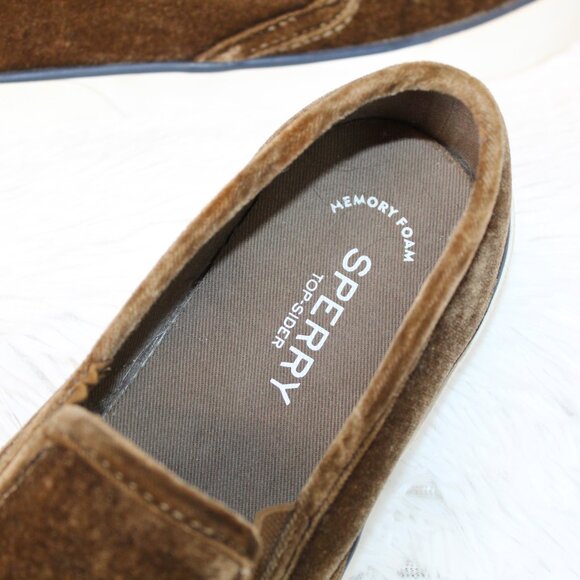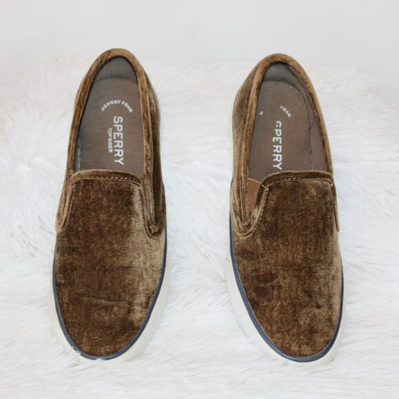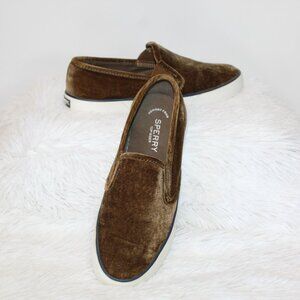 GORGEOUS! Like new brown velvet slip-on top-siders by Sperry. Size 7.5. Excellent pre-owned condition!!