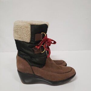 Sperry Top-Sider Weatherproof Suede Leather Sherpa Lined Wedge Boots - Size