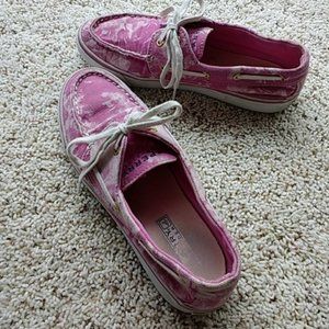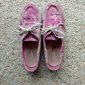 Sperry Top-Sider canvas slip-on shoes pink and white tye dye look Women's size 6.5