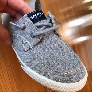 Sperry Top-Sider shoes Lounge Away Jr Silver sparkly Boat sneakers girls size 2
