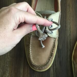 Size 7.5. Perfectly worn. Light flaws shown in pictures. Still Good pair of shoes. Perfect for Summer!