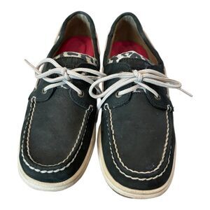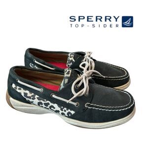 Sperry Top-Sider Women's Angelfish Black Leather Leopard Boat Shoes Loafers 8.5