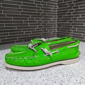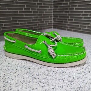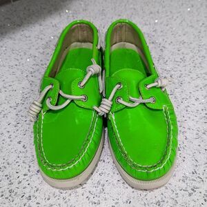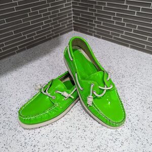 Sperry Top-sider Jeffrey Neon Lime Green Patent Leather Boat Shoes Size 6.5