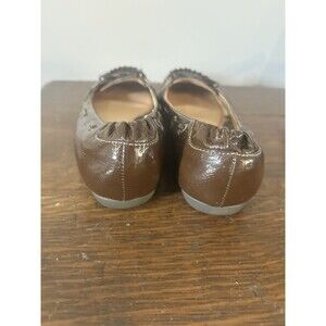 The Sperry Top Sider Patent Leather Brown Boat Shoes are a stylish and comfortable choice for women in size 7. These slip-on loafers feature a classic round toe shape, made with leather uppers and lined with fabric. The rubber outsole provides arch support, cushioning, and slip resistance, making them ideal for various occasions such as travel, casual outings, and business meetings. The brown color and preppy design with a metal accent add a touch of sophistication to these versatile boat shoes, perfect for wearing in the summer, fall, and spring seasons.