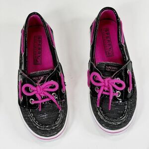 Sperry Topsider Seabright Shimmer Boat Shoes Black Pink Toddler Size 10