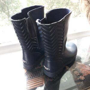 Beautiful, heavy duty, navy blue Sperry Topsider rubber boots with a faux fur lining. They are super comfortable and plush on the inside. These boots have never been worn (a bit too small for me!). They are easy to pull on and keep your feet warm and dry! Midcalf height. These retail at $100!