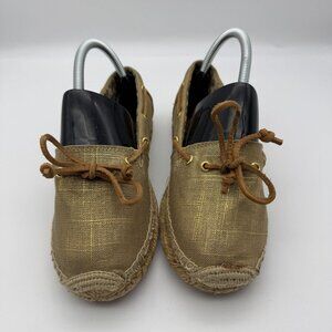 Sperry Top-sider Womens 6.5 Gold Metallic Weave Flat Espadrilles Slip On